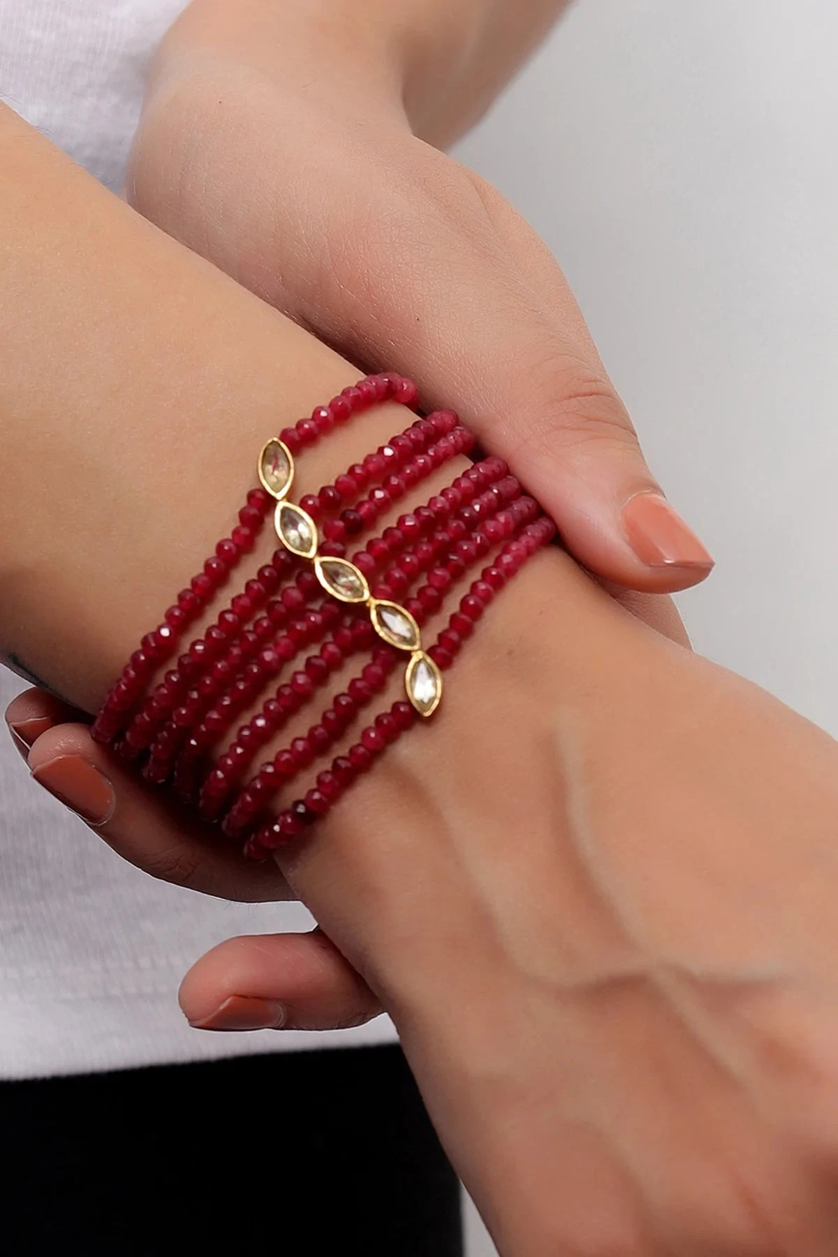 - Maruise Citrine stringed with ruby red beads and dipped in 22k gold with adjustable bracelet locking.