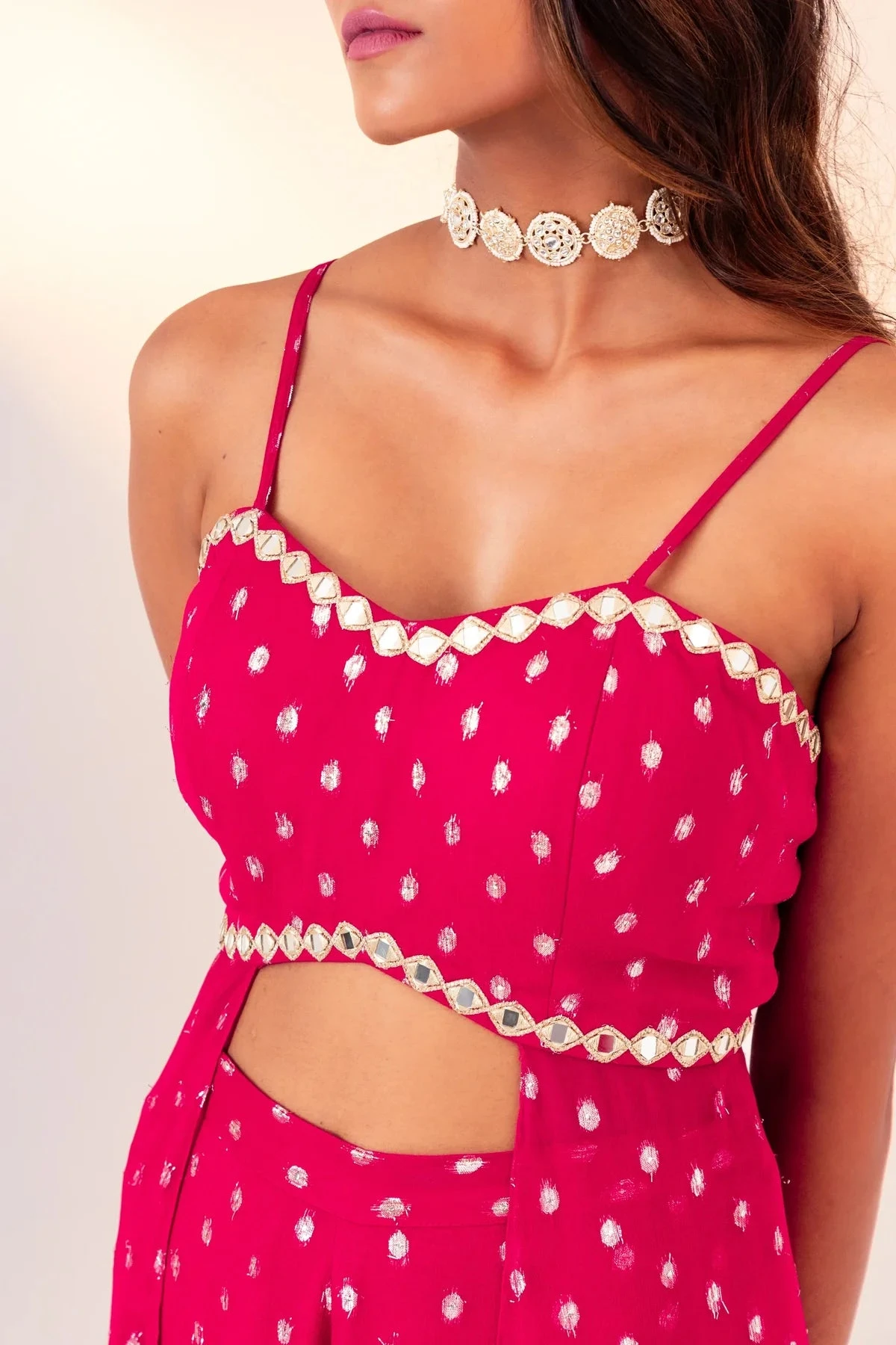 Back Knot Blouse With Side Panels And Straight Pant Set