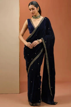 This consists of v-neckshape blouse with handwork on it. It is paired with saree