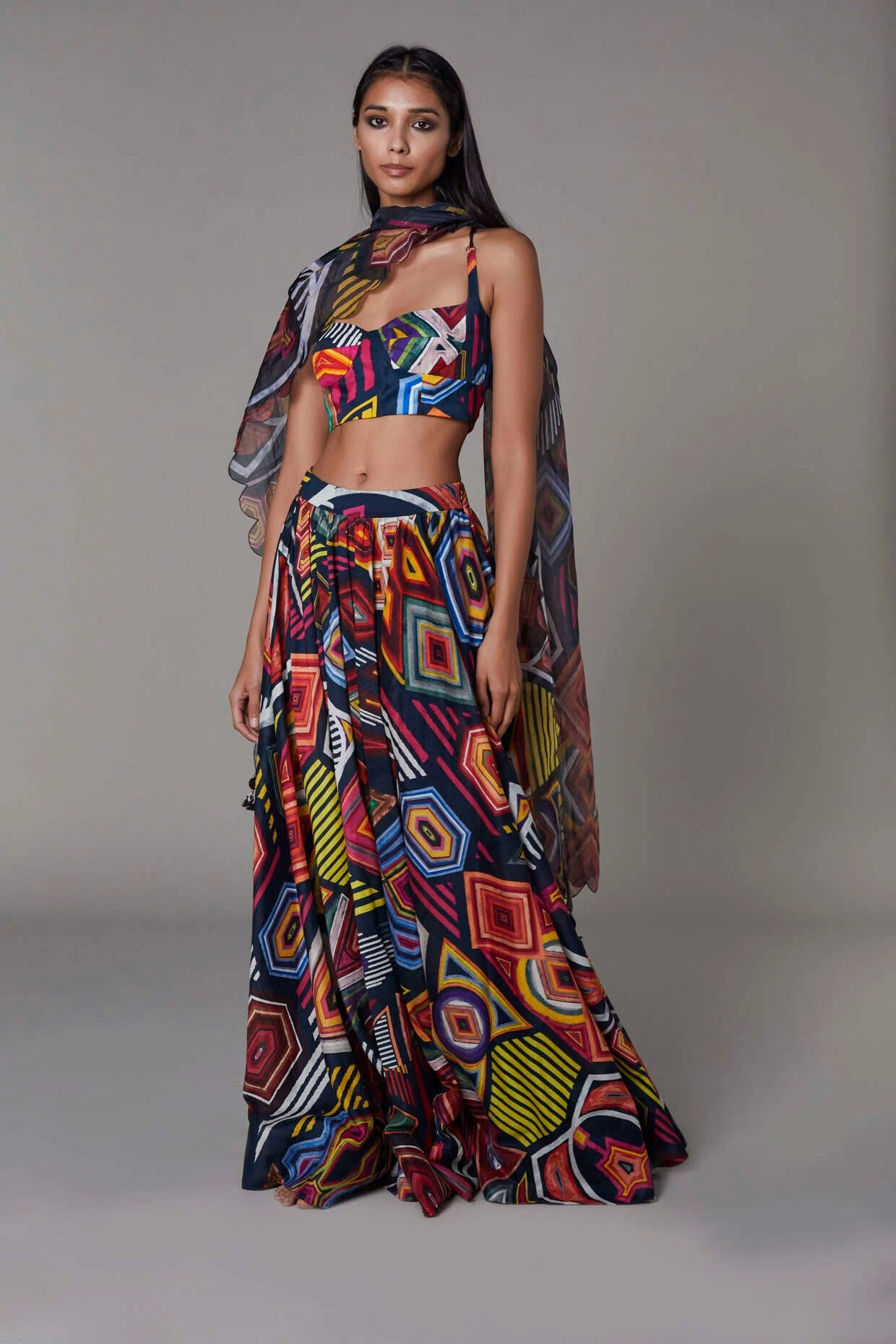 - Lehenga : Abstract print lehenga