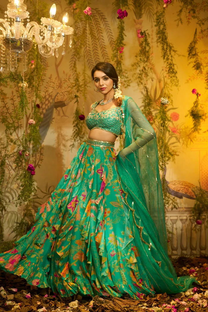 SKU: BGLSB 8283761803499 Categories: Aayushi Maniar, Shop By Designer (A - J), Womenswear Tags: Aqua, Enchanted, Lehengas, New Arrivals