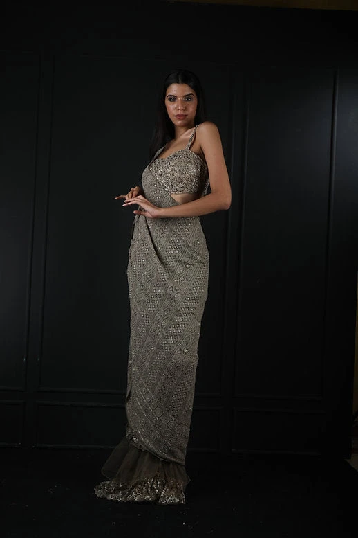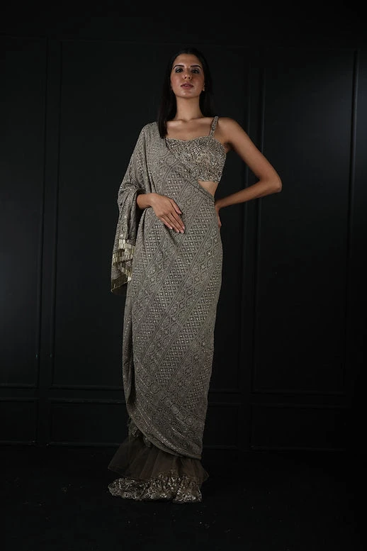 Chikankari Half And Half Saree