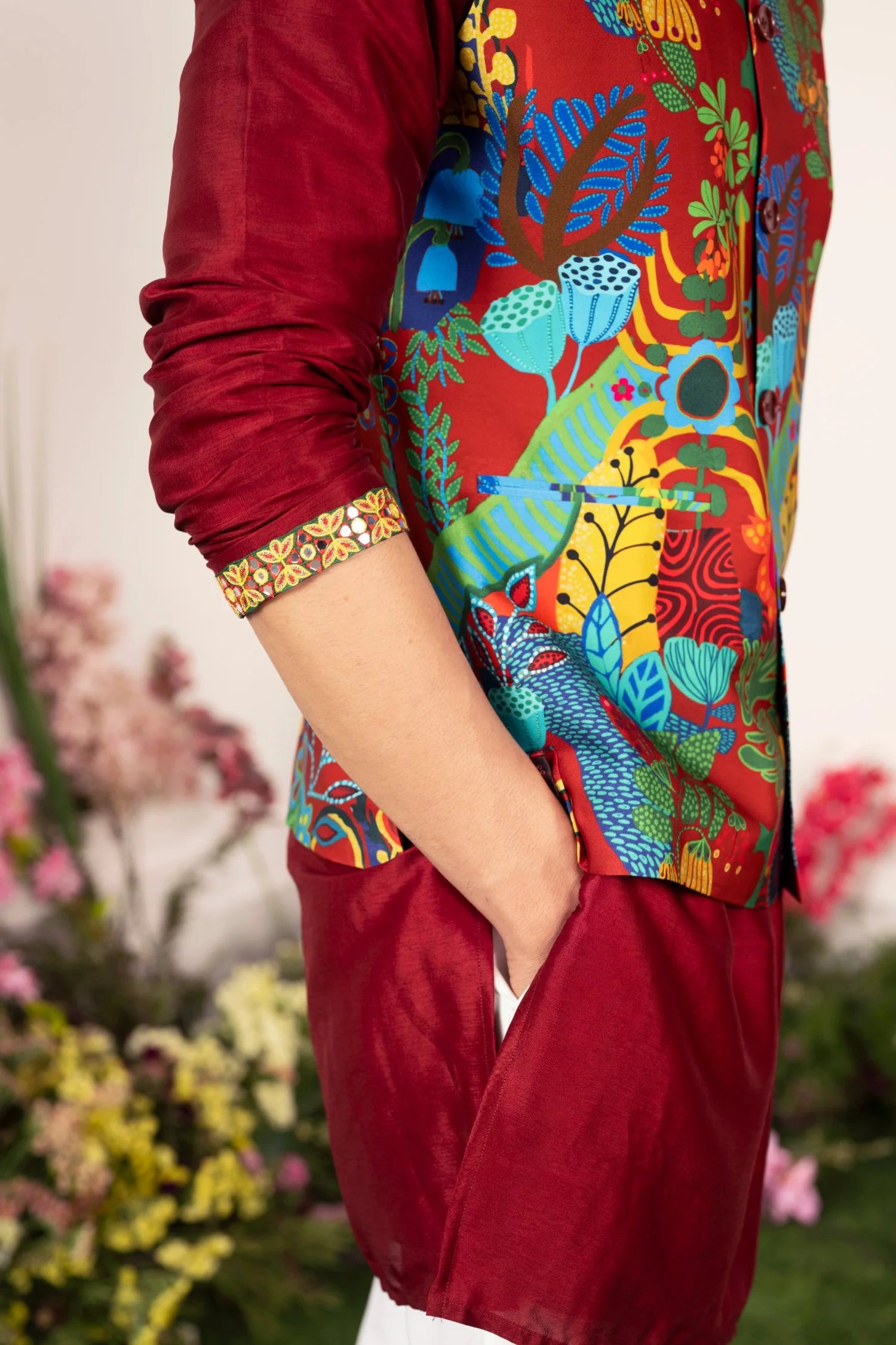 Featuring Our Crimson Bundi Kurta And Pant Set