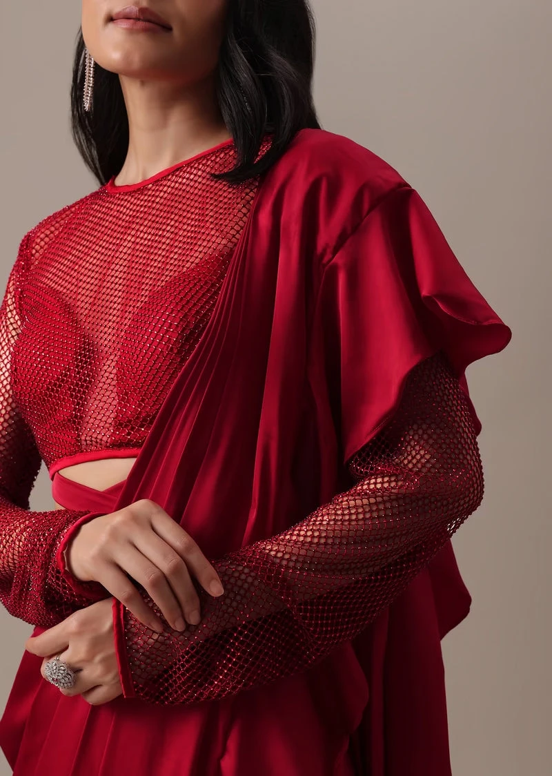 - Pack Contains: 1 blouse 1 stitched saree, width is 47″