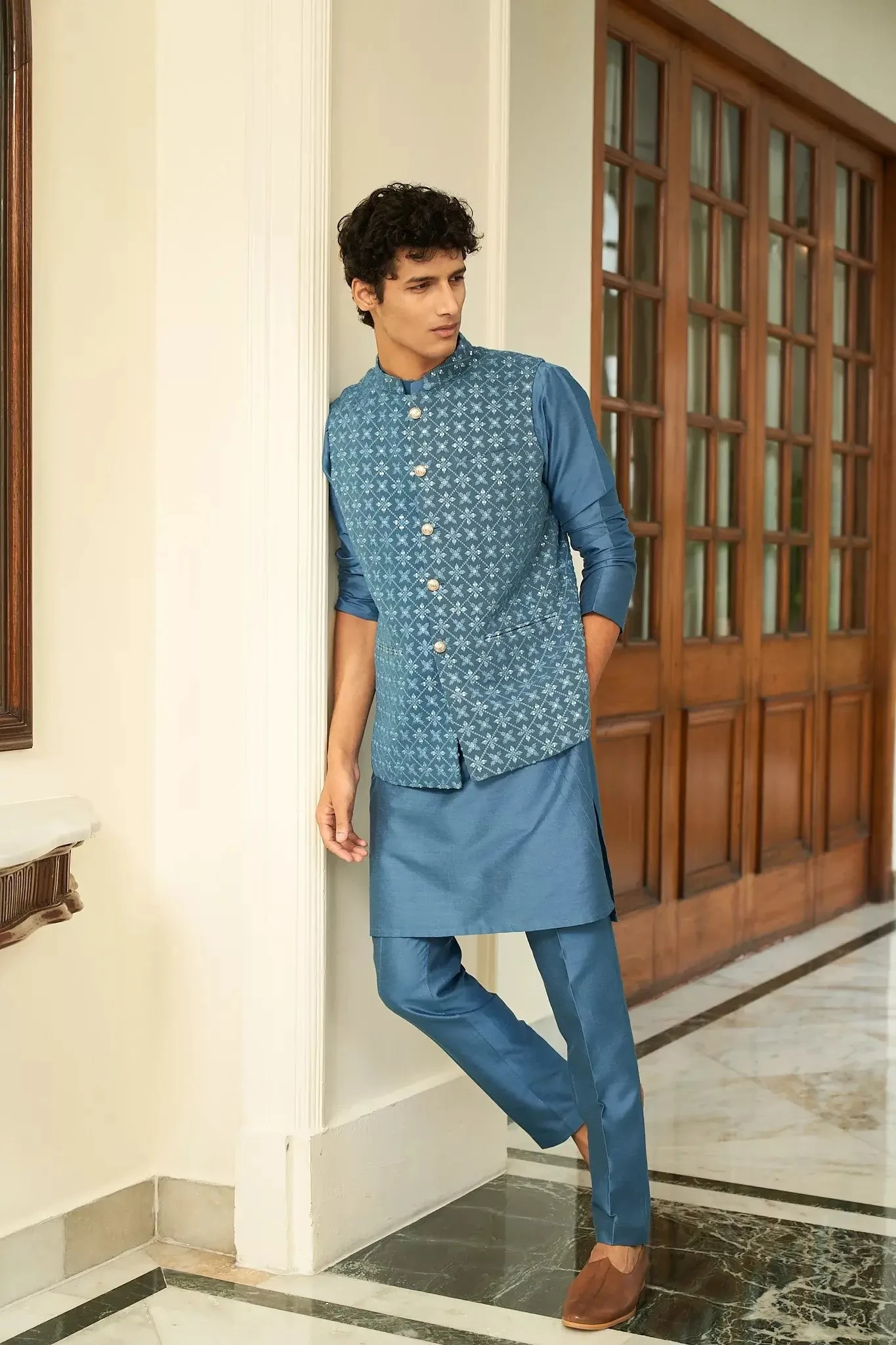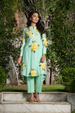 A perfect festive look with intricate patterns in embroidery using resham and sitara.