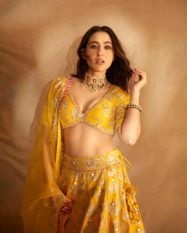 Inspired by the rich history, vintage textiles, and breath-taking embroideries, this vibrant ensemble features exquisite marodi work with a shimmer of sequins. The billowing skirt showcases the classic chandbali motif, paired with a sleeved choli adorned with zardosi work. The soft organza dupatta adds a delicate touch, telling a story of love, passion, heritage, and beauty. The perfect ensemble for the bold bride, embracing the spirit of today in the timeless romance of fashion