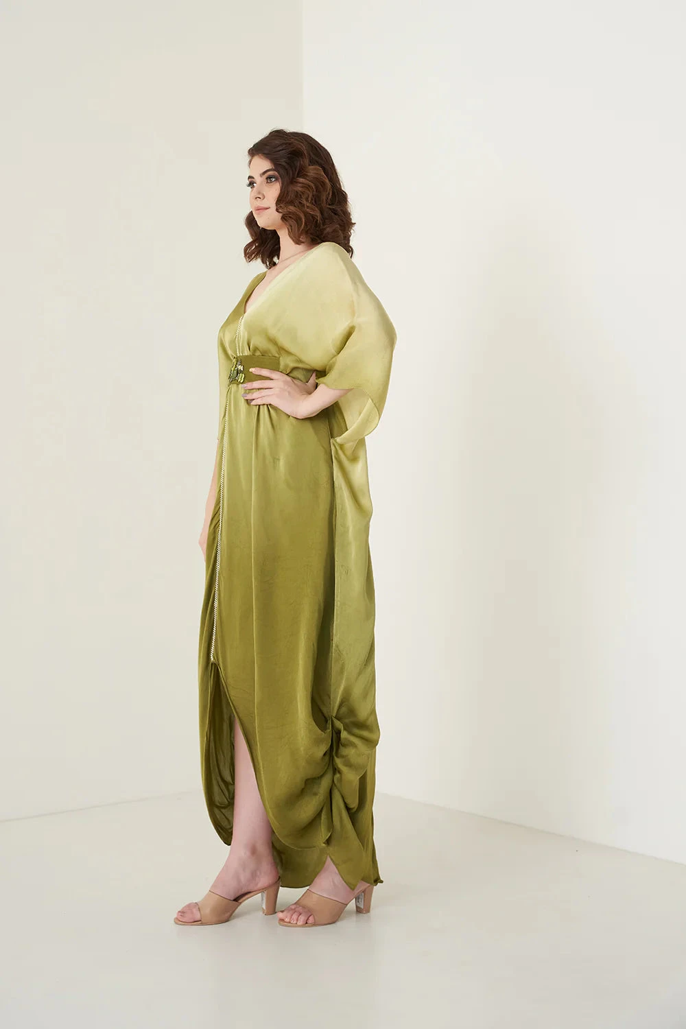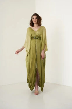 Ombre Kaftan With Pearl Detailing Comes With A Detachable Embroidered Belt.