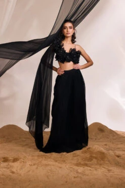 Elevate your wardrobe with the versatile charm of our HARMONY Skirt Set, where the resplendent floral-inspired 3D blouse meets the subtlety of a drape skirt, offering endless styling possibilities for your fashion-forward ensembles.