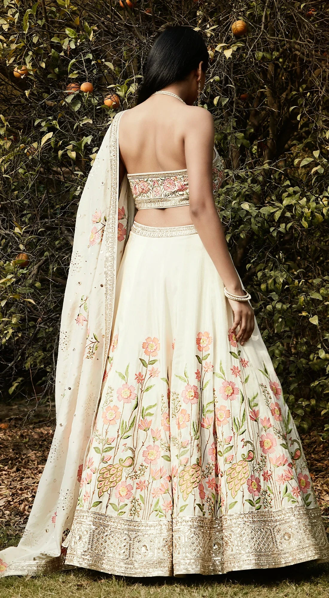 Outfit:Ivory Floral Embroidered Lehenga Set