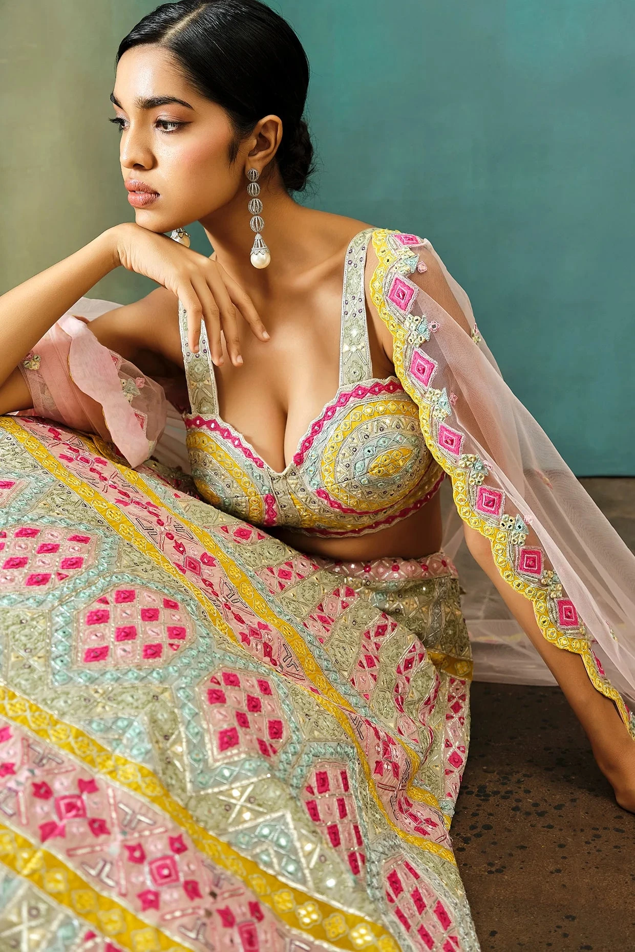 Be the first to review “Ivory Geometric Applique Mirror Lehenga” Cancel reply