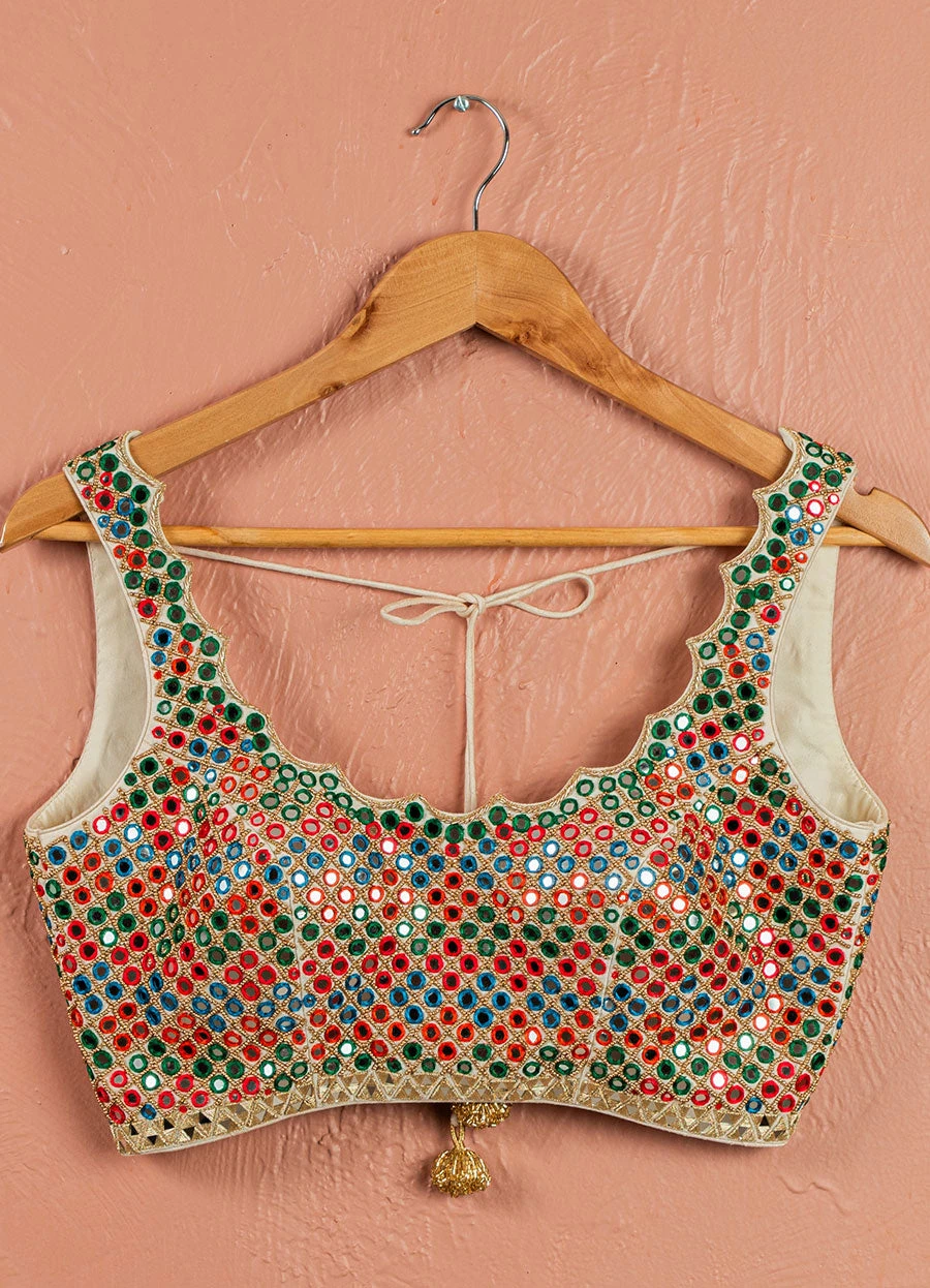 Sharara : Georgette, Blouse : Rawsilk , Blouse Emb: Mirrorwork & Threadwork, Dupatta : Net, Dupatta Border : Mirrorwork