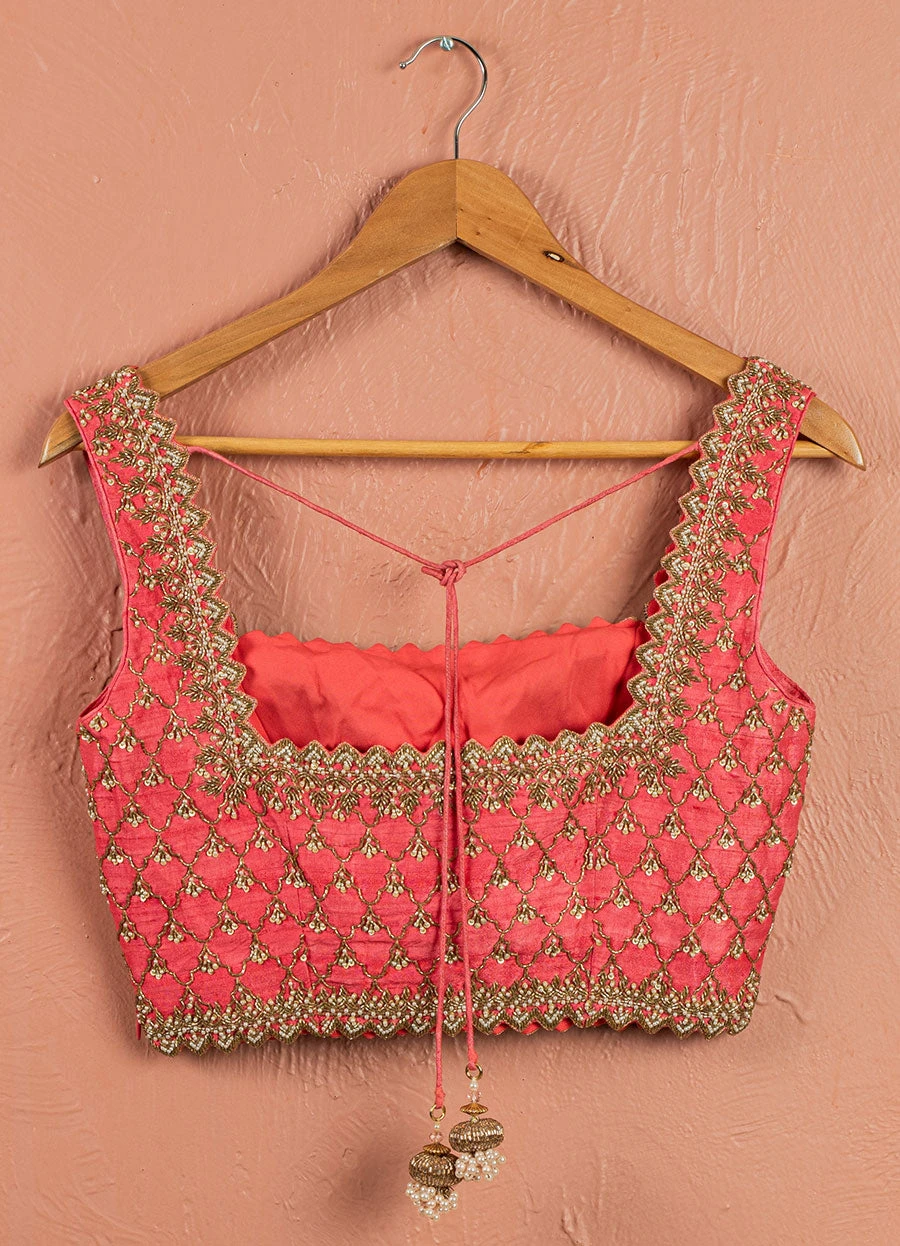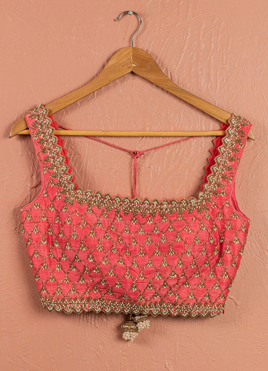 Sharara : Georgette, Blouse : Rawsilk , Blouse Emb: Pearl & Zardosi Work, Dupatta : Net, Dupatta Border : Mirrorwork