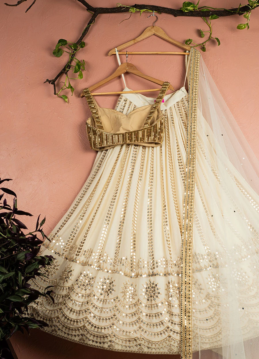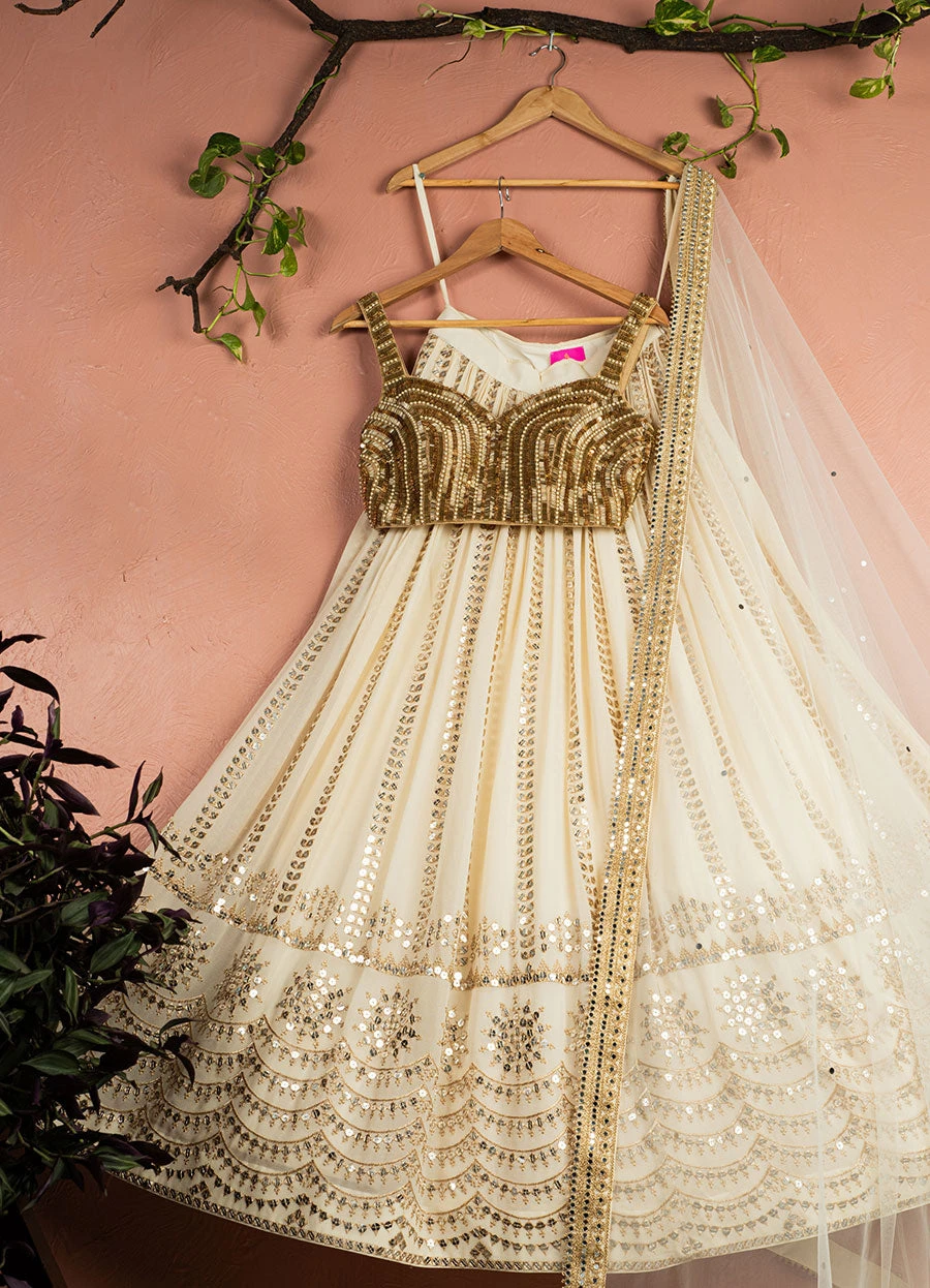 Ivory Sequin Starlight Lehenga With Gold Blouse & Ivory Dupatta