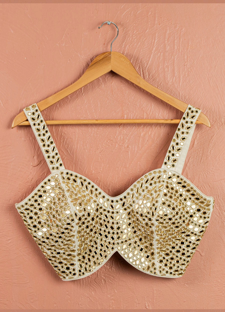 Ivory Sequin Starlight Lehenga With Ivory Mirror Blouse & Dupatta