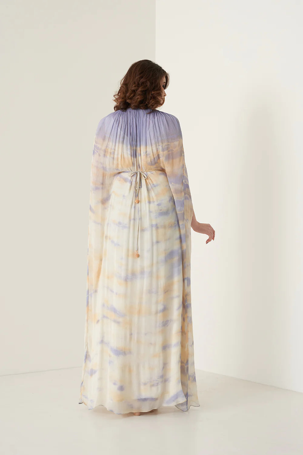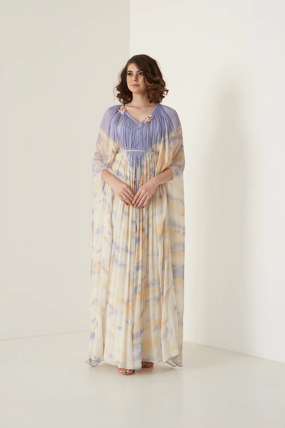 Lavender, Peach ,cream Tie And Dye Kaftan With Chain Detailing And Neck Embroidery Patch