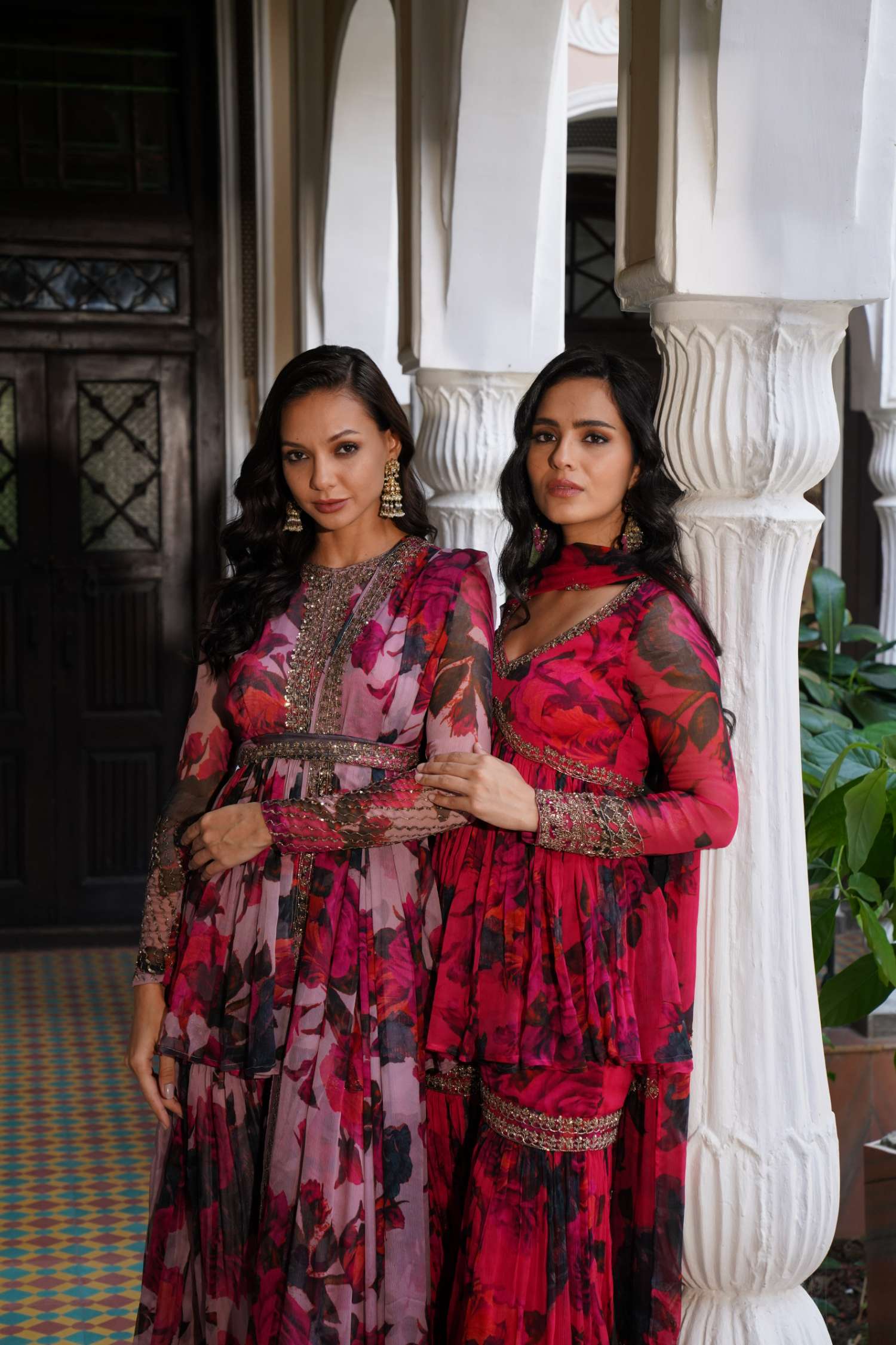 Featuring a Lilac Floral Peplum & Sharara Set in Chiffon.