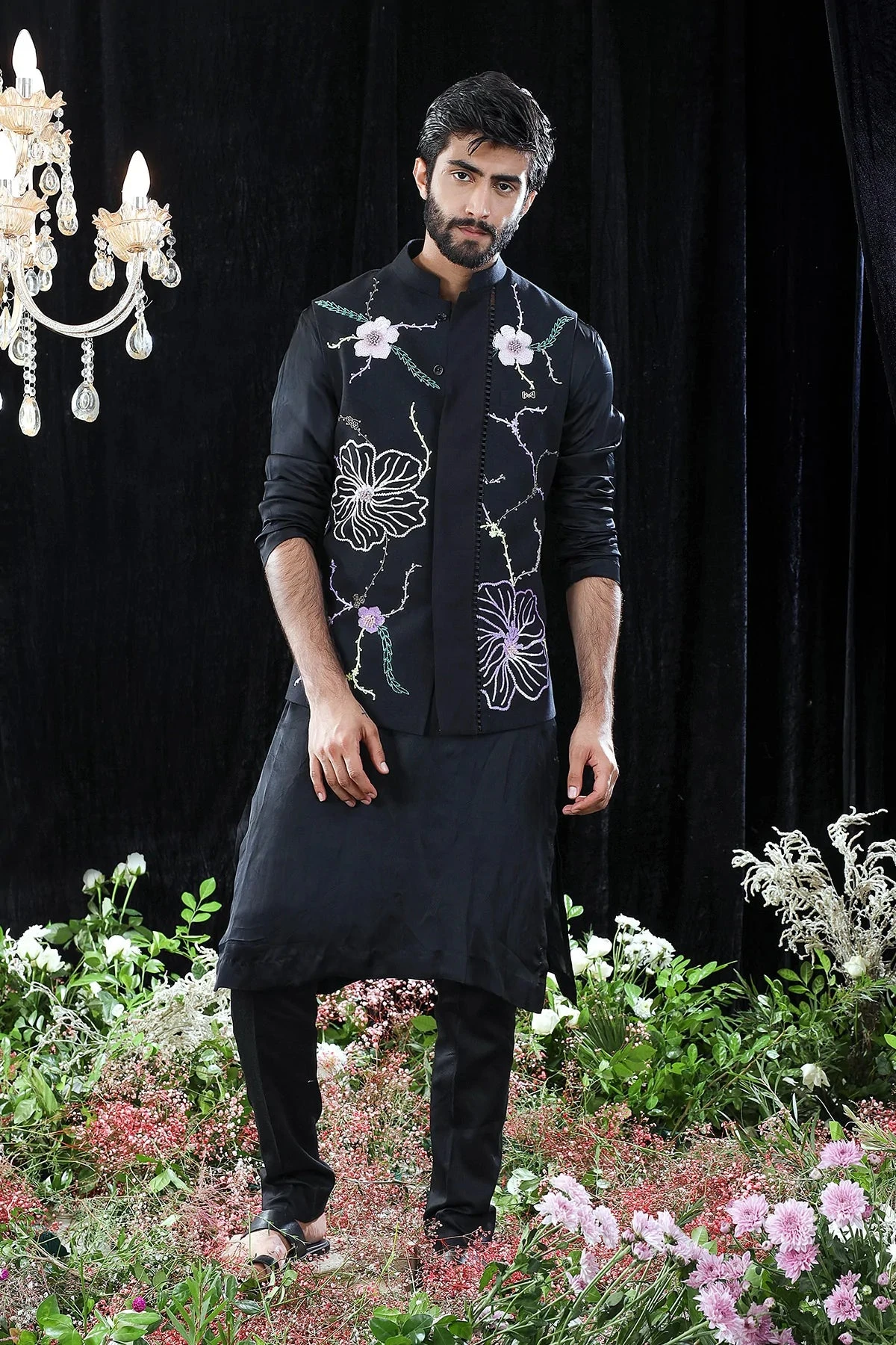 Hand Embroidered Bandi Jacket, Kurta With Pant
