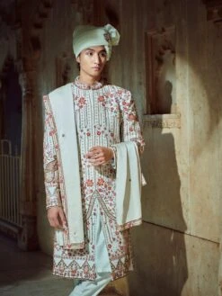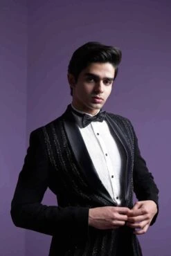 Midnight Blue Hand Embroidered Jodhpuri Set With Buta Brocade Kurta And Fusing Pants