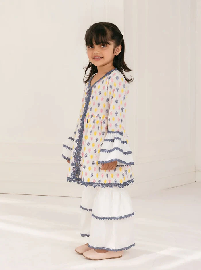 Mulmul Cotton Milana White Kurta With Milana White Garara