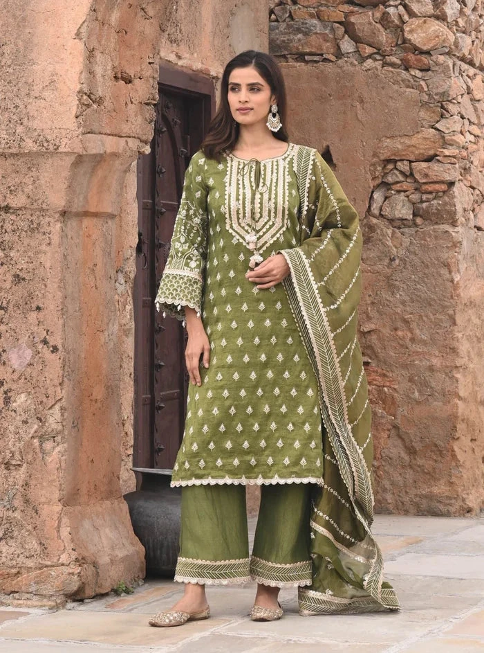 - To complete the ensemble, the matching dupatta boasts a broad border and delicate line embroidery, tying together the luxurious aesthetic with finesse.