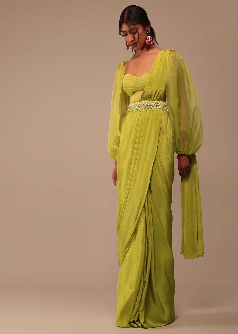 - Pack Contains: 1 Blouse, 1 Stitched Saree, 1 Emboidered Belt