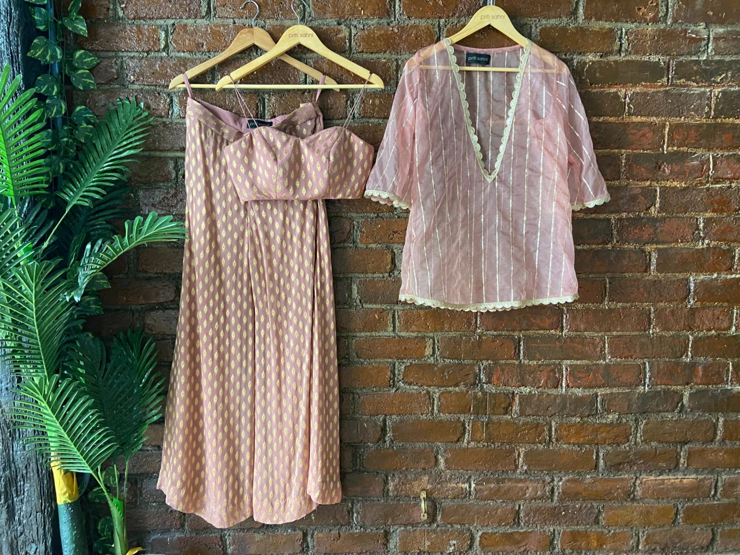 Be the first to review “Nude Pink Bustier And Palazzo Pant With Kurta” Cancel reply