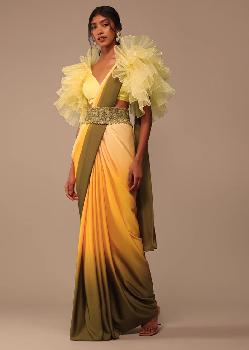 - Pack Contains: 1 Blouse, 1 Saree, 1 Emboidered Belt