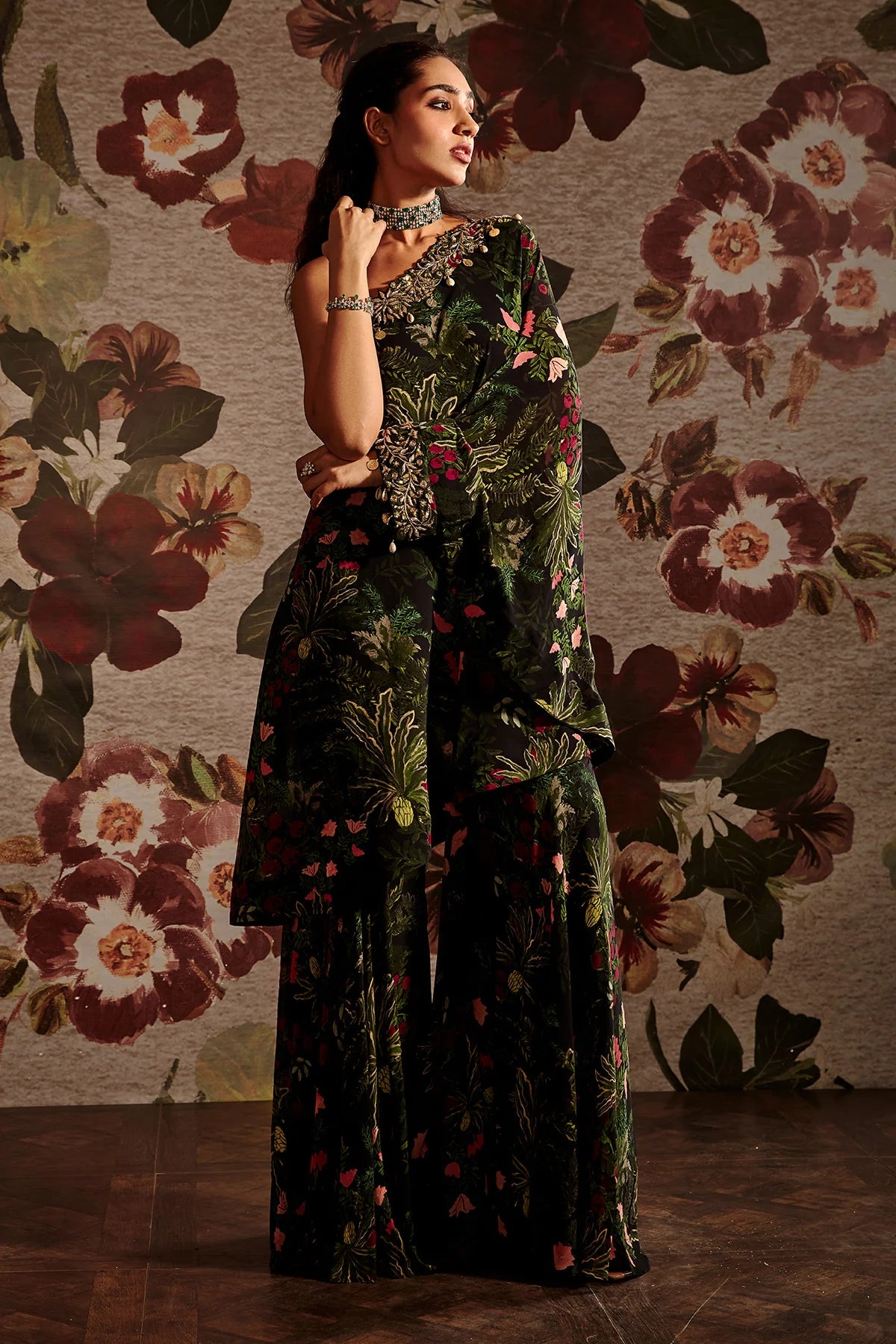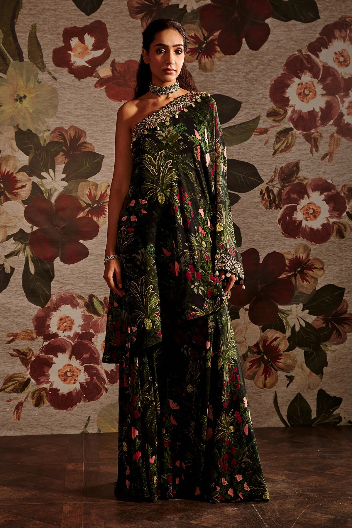Heavily embroidered neckline & cuff