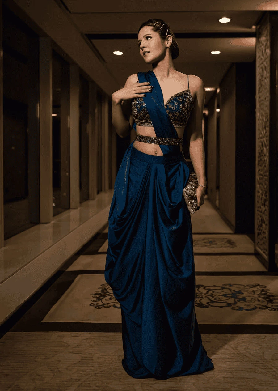 - Pack Contains: 1 B louse, 1 Stitched Saree, 1 Belt