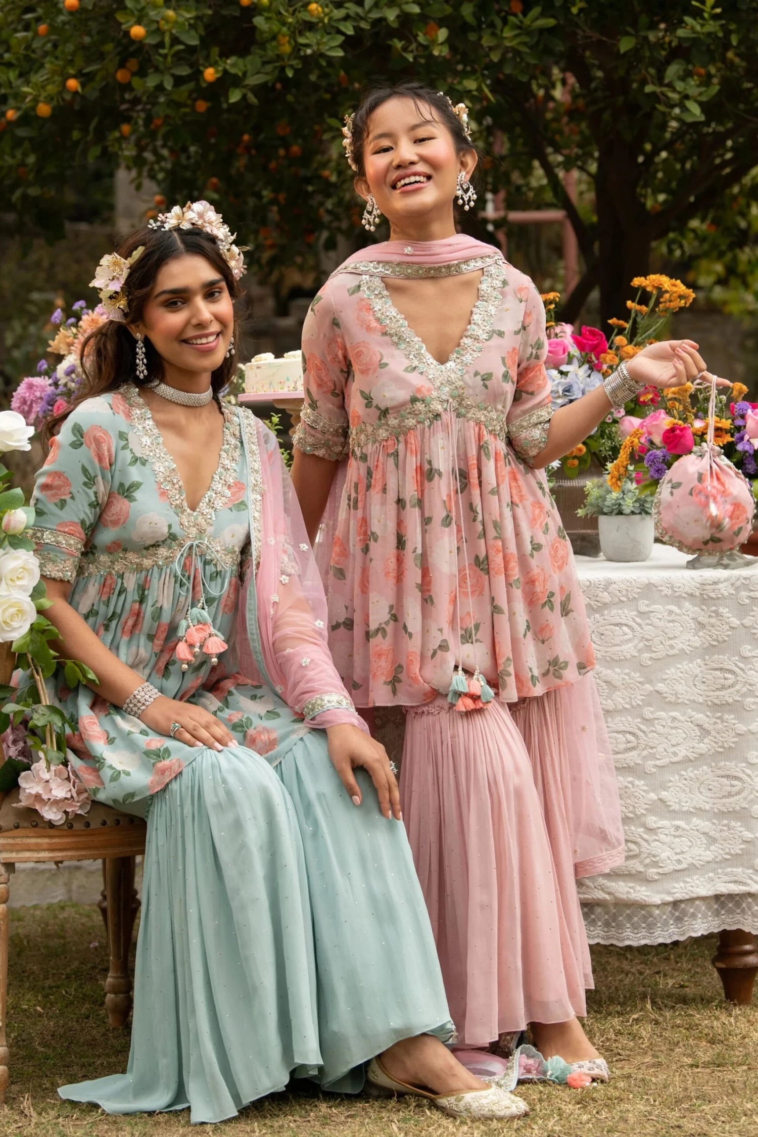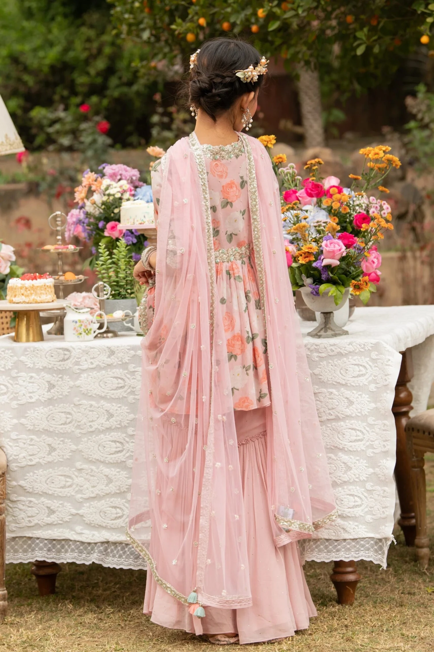 Pink Printed Sequin Embroidered Garara Set paired with Net Embroidered Dupatta