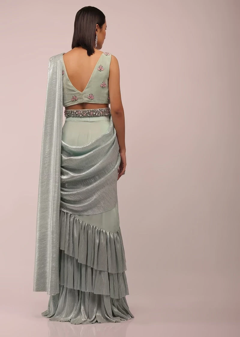 - Pack Contains: 1 Blouse, 1 Stitched Saree, 1 Belt