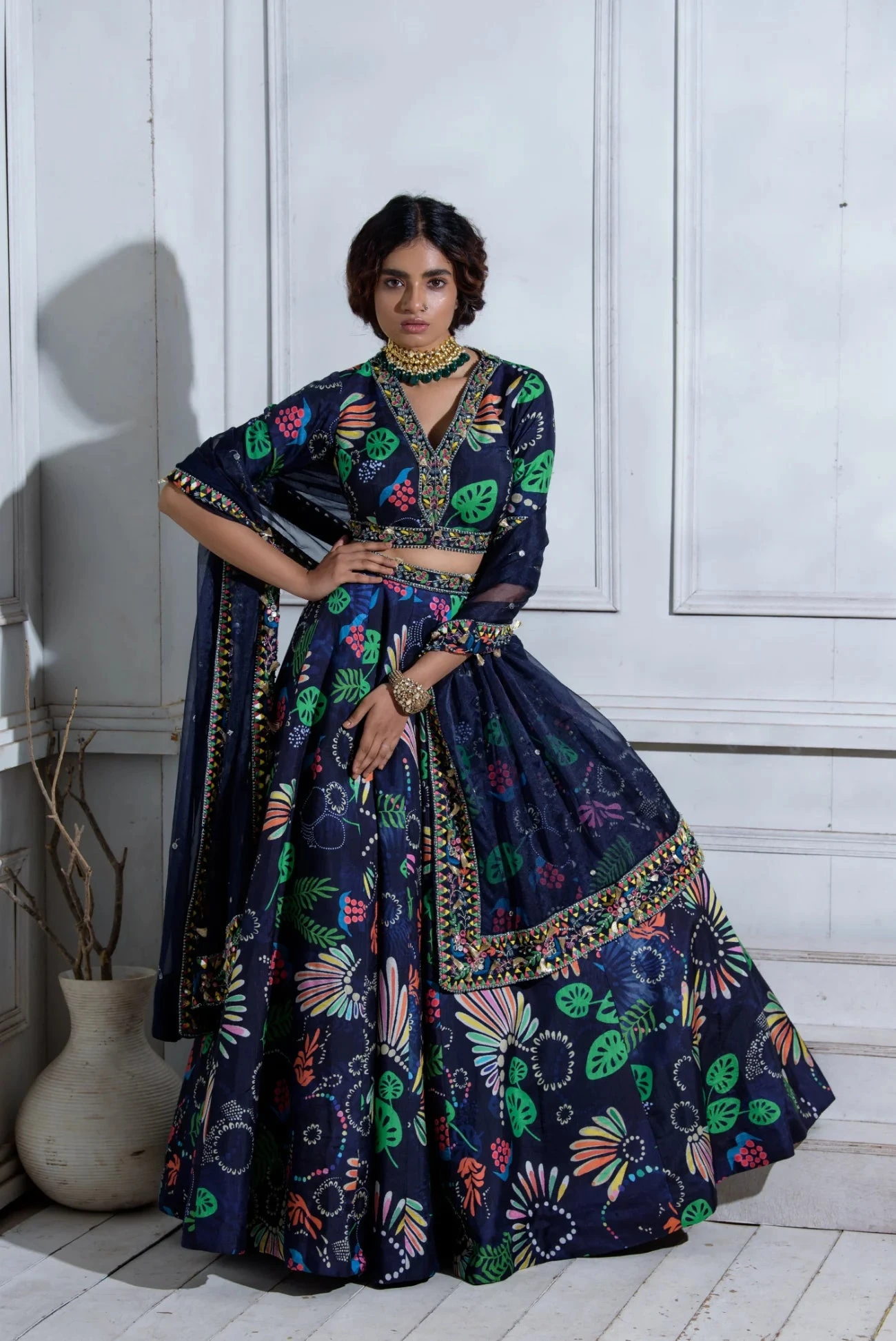 Lehenga & Blouse -Tussar Silk | Dupatta – Organza