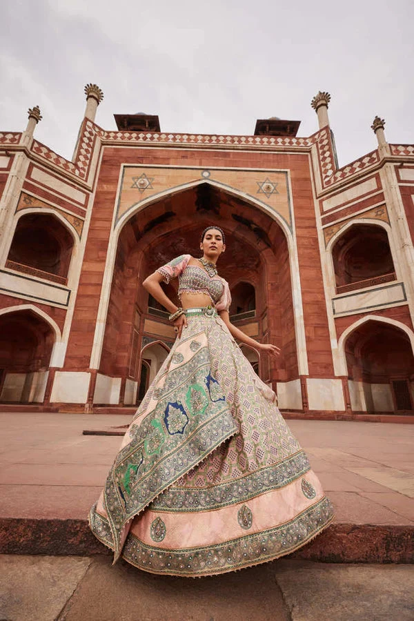 Be the first to review “Powder Pink Bandhani Banarasi Lehenga” Cancel reply