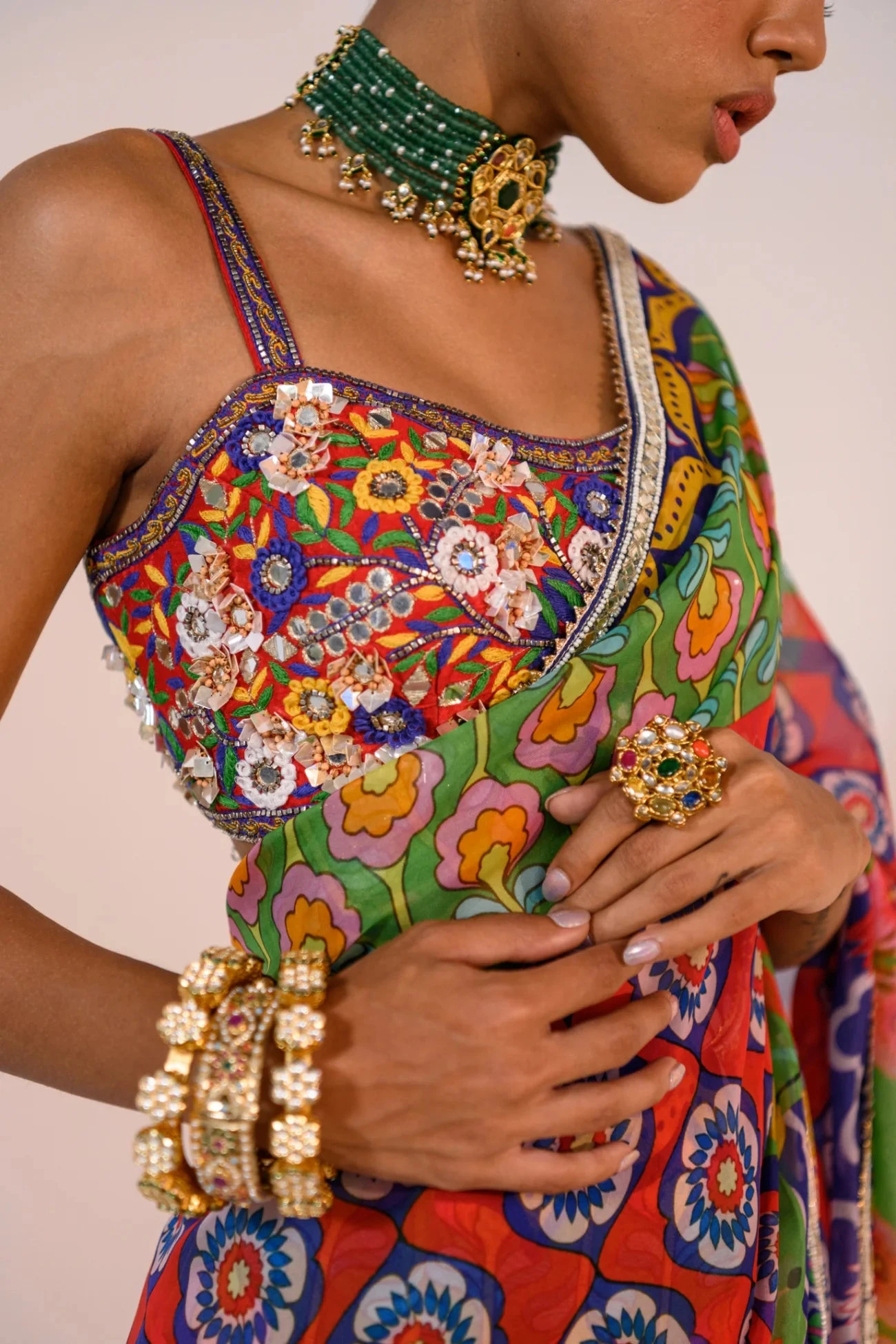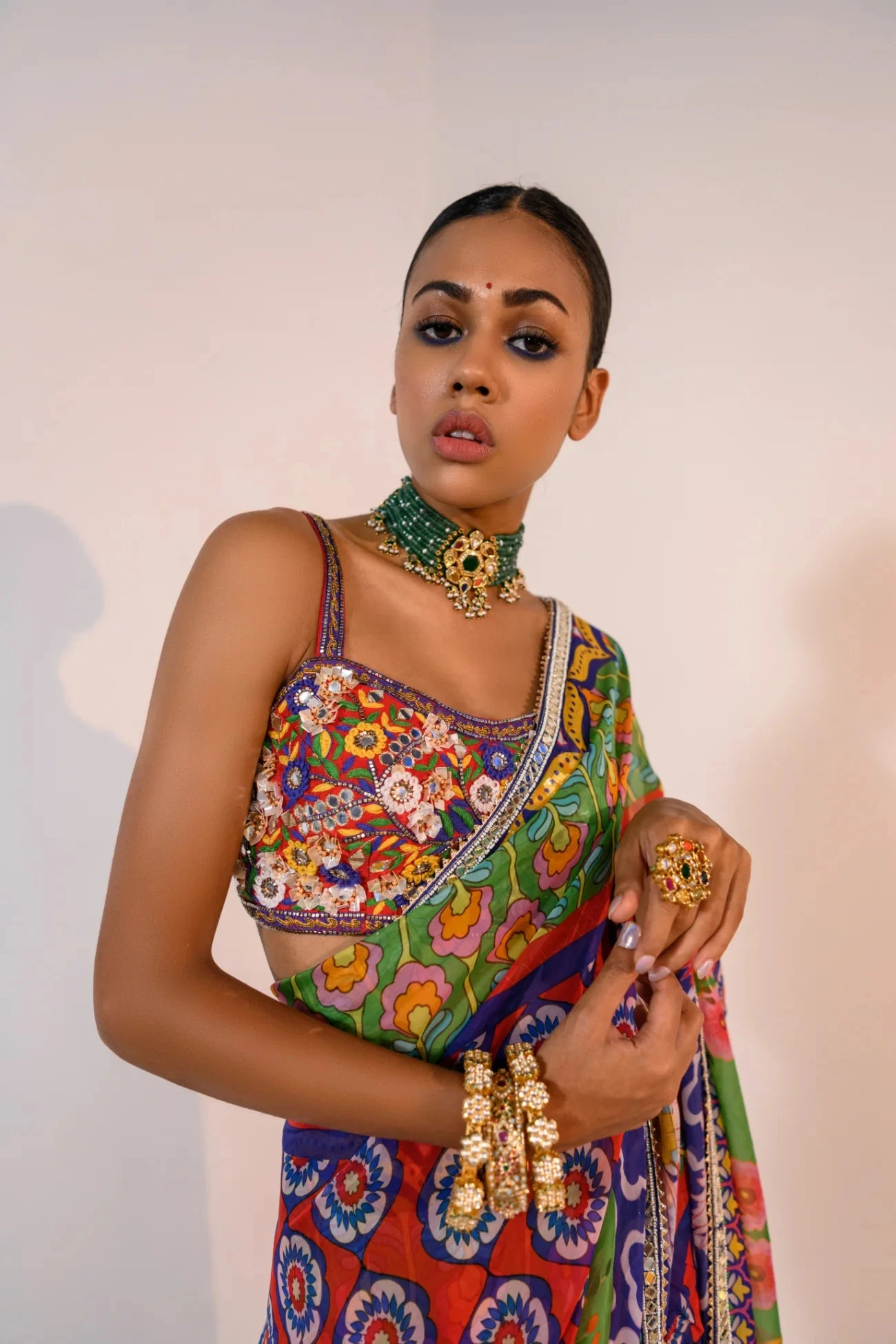 Our Pre Pleated Veronica Saree With Hand Embroidered Corset Blouse.