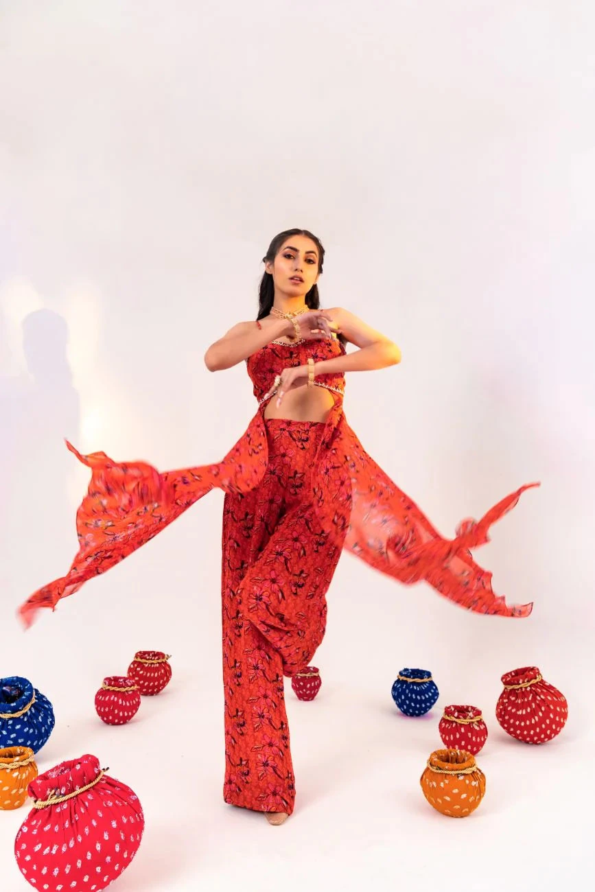 Be the first to review “Printed Back Knot Blouse With Side Panels And Straight Pant Set” Cancel reply