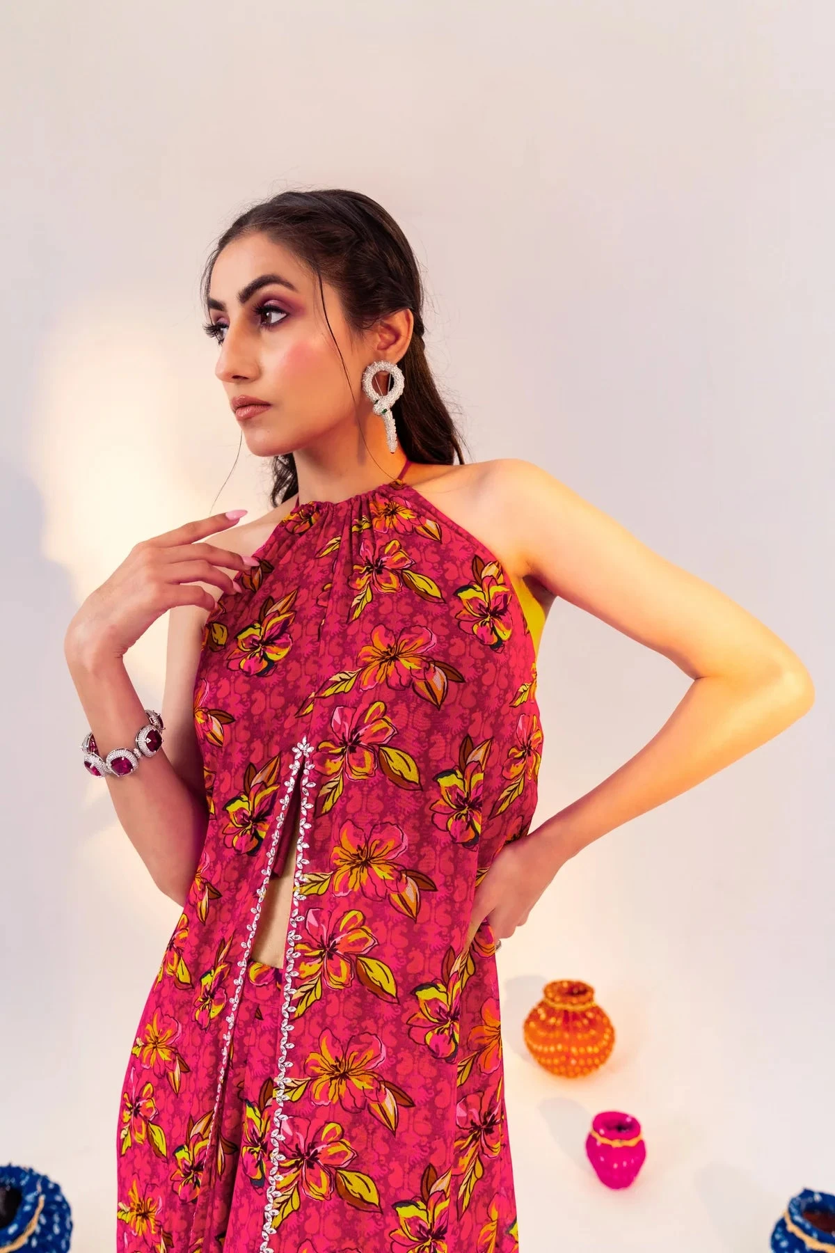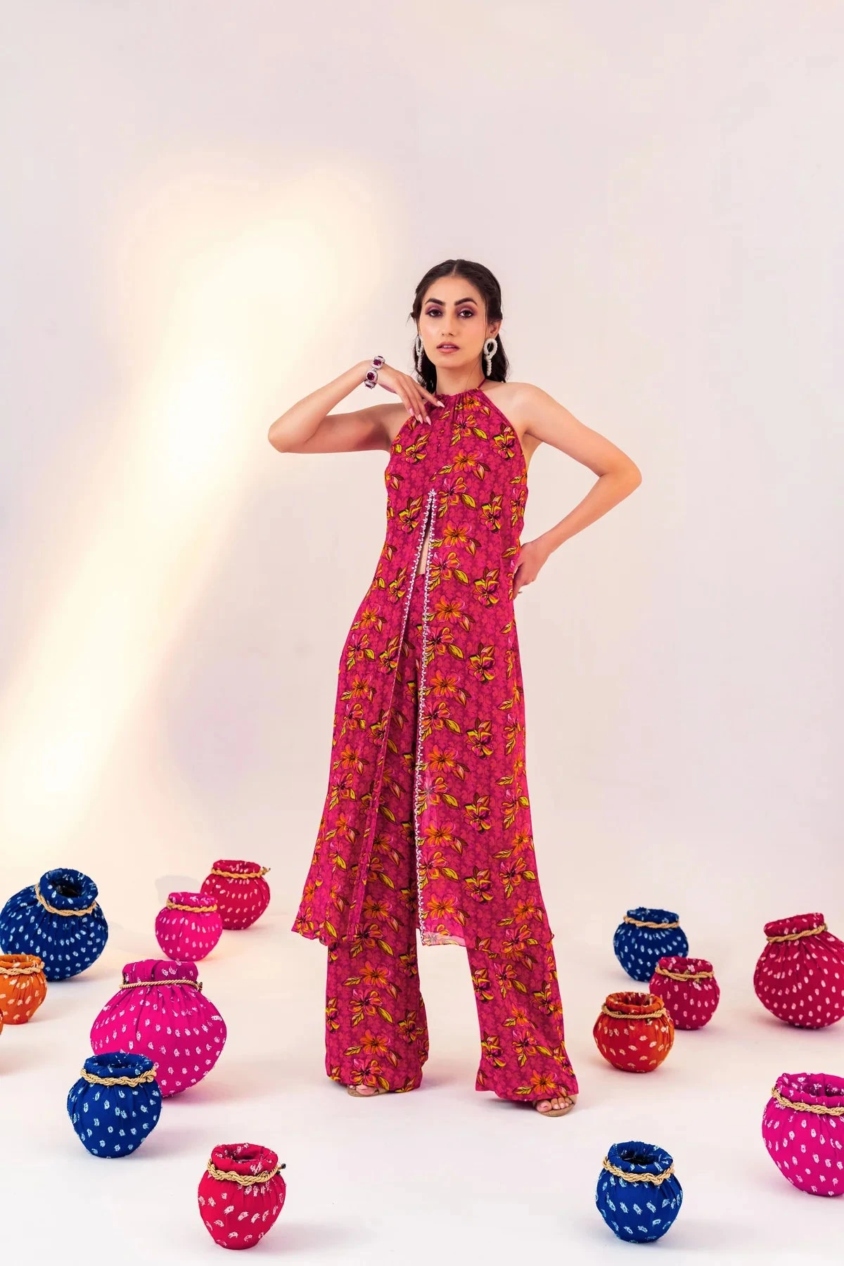 Be the first to review “Printed Centre Cut Halter Neck Tunic And Straight Pant Set” Cancel reply