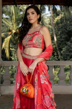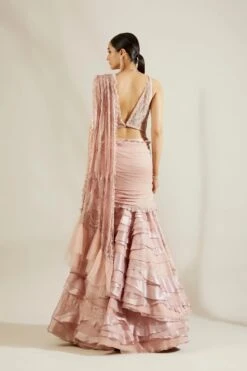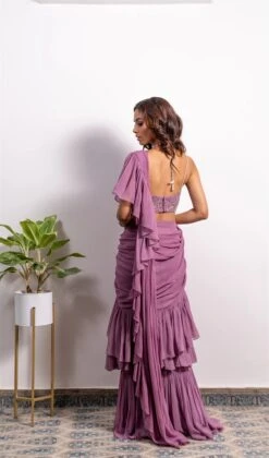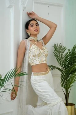 Dragonfly Embroidered Pearl Strap Blouse With Pre-Draped Frill Saree