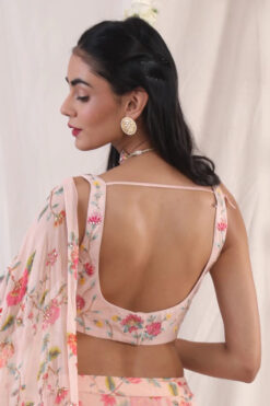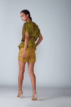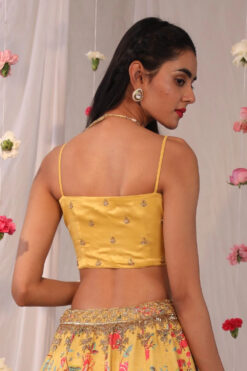 Silk Blouse With Asymetrical Neck And Waist Line Embroidered With Multi Colour Thread