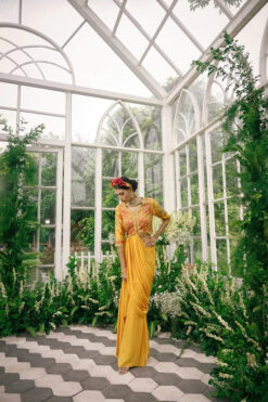 Garnet Rose Handcrafted Sequin And Crystal Shimmer Corset Paired With Flared Pants
