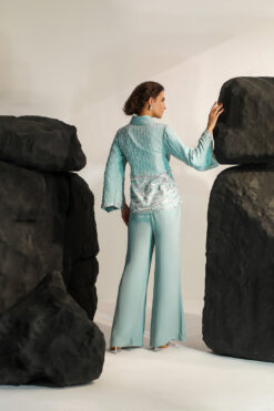 Blue Floral Printed Georgette Garara Set With Gota Patti Combined With Sequins, Pearl And Dori Work