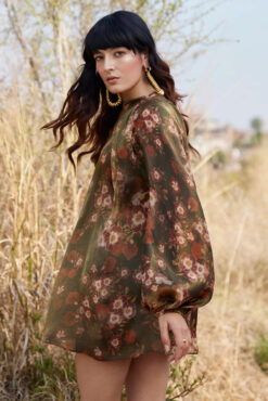 Hot Pink Dress With A Chunky Embroidered Bishop Sleeves And Collar Neckline