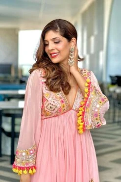 Mulmul Banarsi Gerua Pink Kurta With Mulmul Banarsi Gerua Pink Pant
