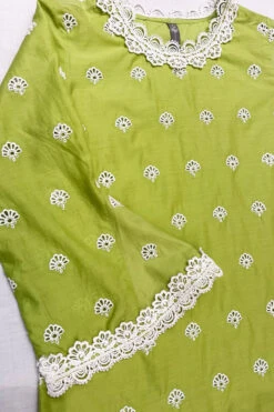 Mint Green Bemberg Satin A Line Suit With Moti Tassels And Organza Dupatta