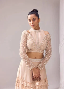 Mulmul Banarsi Carey Off White Kurta With Carey Off White Pant