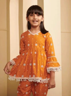 Mulmul Cupro Valaya Yellow Kurta With Mulmul Cupro Valaya Yellow Pant