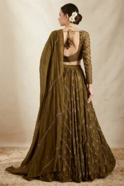 Parrot Green Suit Set In Art Silk With Tassels On The Sleeves And Dupatta