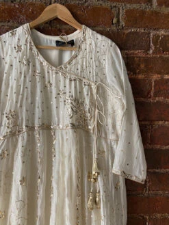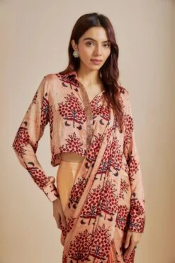 Orange Indo-Western Gown In Crepe With Tikki And Moti Hand Work