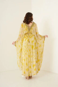 Wine Purple Gown Embellished In Sequins With Cowl Neckline And Peasant Sleeves