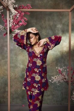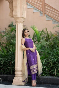 Powder Blue Bemberg Silk Kurti Suit With Dupatta And Silk Pants