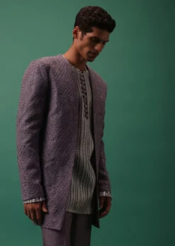 Purple Foil Striped Kurta And Pant Set With Hand-Highlighted Jacket